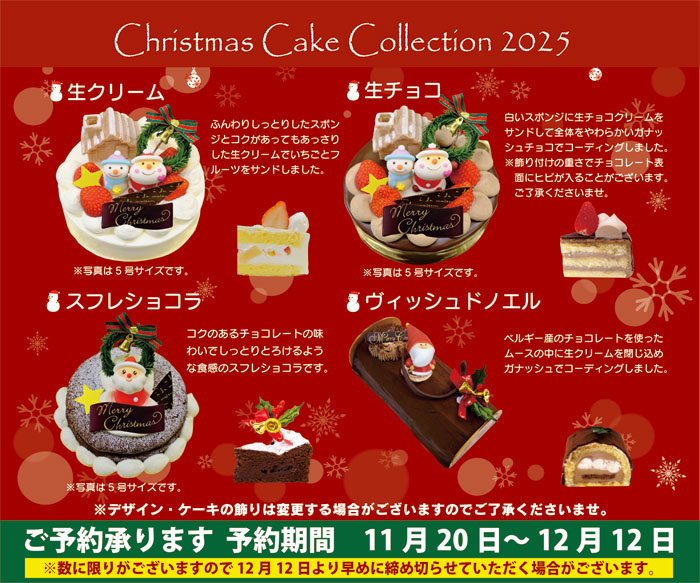 当店では、クリスマスを彩る華やかなケーキ、ご自宅用にぴったりの焼菓子ギフト、そして年末年始のご挨拶にも最適な詰め合わせを豊富にご用意しております。